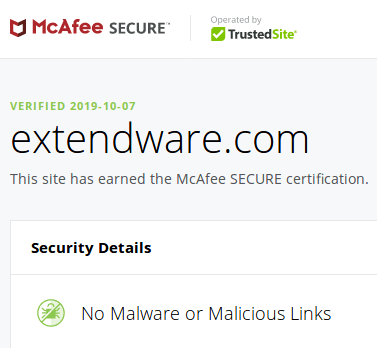 NB. Extendware runs a McAfee Secure seal which does not detect the compromise yet: